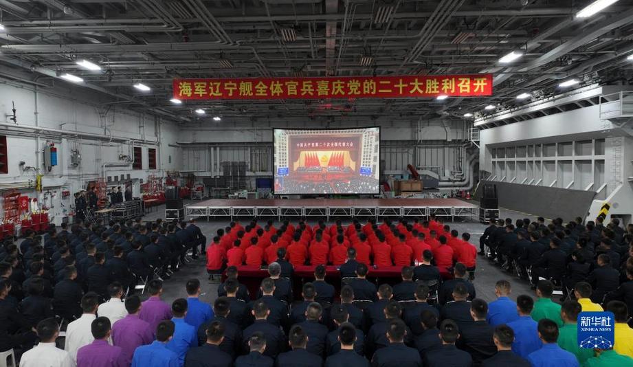 10月16日,遼寧艦全體官兵收看中國(guó)共產(chǎn)黨第二十次全國(guó)代表大會(huì)開(kāi)幕會(huì)。新華社發(fā)(任澤霖 攝)