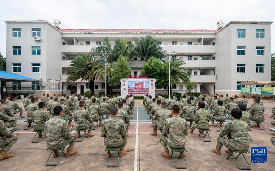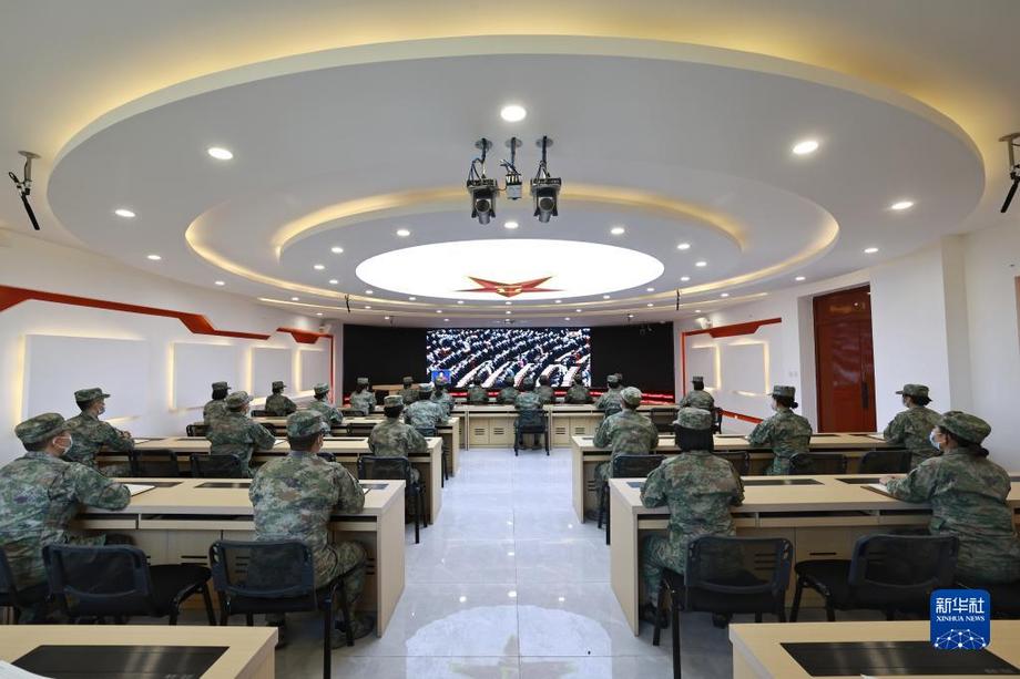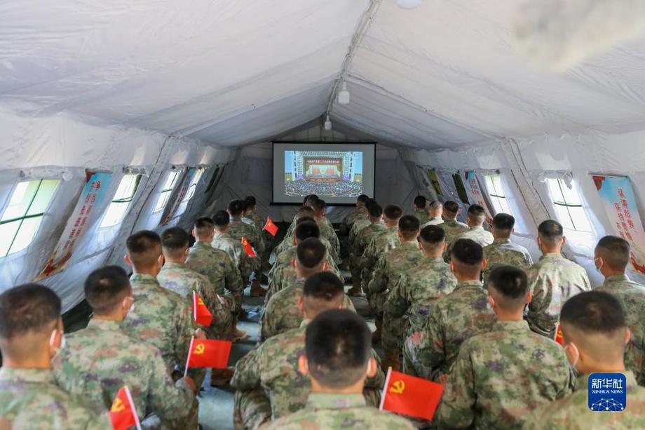 10月16日,中部戰(zhàn)區(qū)陸軍第82集團(tuán)軍某旅官兵收看中國(guó)共產(chǎn)黨第二十次全國(guó)代表大會(huì)開(kāi)幕會(huì)。新華社發(fā)(徐超 攝)