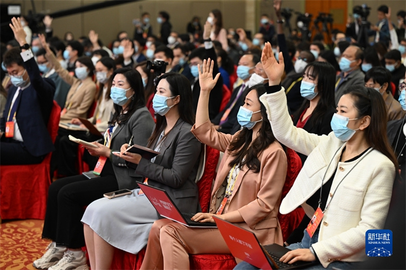 這是記者在分會(huì)場(chǎng)舉手提問(wèn)。