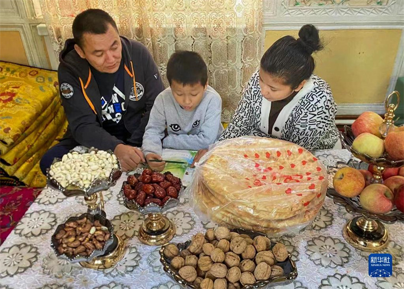 10月16日,新疆喀什古城居民阿依先木姑力·阿布來(lái)提(右)在家中輔導(dǎo)孩子功課。新華社發(fā)(唐努爾·玉麥爾 攝)