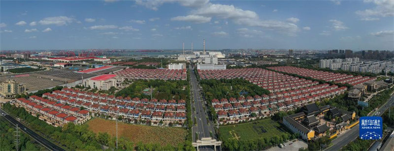 這是10月17日拍攝的江蘇江陰長(zhǎng)江村村貌(無(wú)人機(jī)照片)。新華社記者 季春鵬 攝