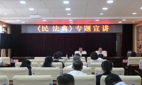十三屆全國人大三次會議表決通過《中華人民共和國民法典》,在四平政法機關引起廣泛熱議。6月16日下午,吉林省四平市委政法委、市法學會開展了《民法典》主題宣講活動。市委政法委副書記黃亞斌主持會議,市委政法委、市法學會、市司法局共計60余名機關干部參加了學習。