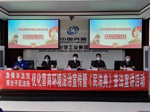 為深入學(xué)習(xí)貫徹習(xí)近平總書記系列重要講話精神特別是關(guān)于優(yōu)化營(yíng)商環(huán)境建設(shè)的重要講話和批示,全面落實(shí)遼寧省高院工作要求和盤錦市委、市政府的具體部署,抓好《遼寧省優(yōu)化營(yíng)商環(huán)境條例》、《民法典》貫徹落實(shí) ,積極推進(jìn)我市法治化營(yíng)商環(huán)境建設(shè)。8月20日下午,盤錦市中級(jí)人民法院、雙臺(tái)子區(qū)人民法院共同組織普法宣講員到北方華錦化學(xué)工業(yè)集團(tuán)有限公司,開展“優(yōu)化營(yíng)商環(huán)境”法治宣講暨《民法典》普法宣傳活動(dòng)。