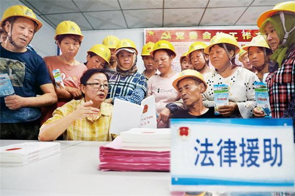 2020年8月26日,河北省唐山市豐潤區(qū)司法局組織律師走進(jìn)社區(qū)、工地,為群眾提供免費(fèi)法律援助。人民圖片 朱大勇/攝
