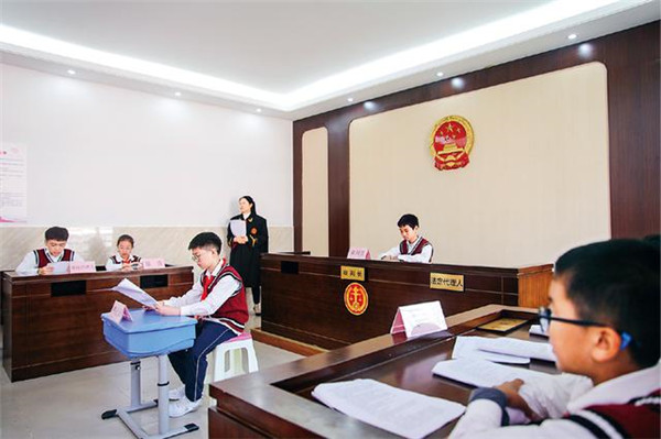 2020年10月30日,安徽省合肥市濱湖世紀(jì)社區(qū)在合肥師范附小三小開展“模擬法庭進(jìn)校園”活動(dòng)。圖為當(dāng)日拍攝的模擬法庭“庭審”現(xiàn)場。新華社記者 曹力/攝
