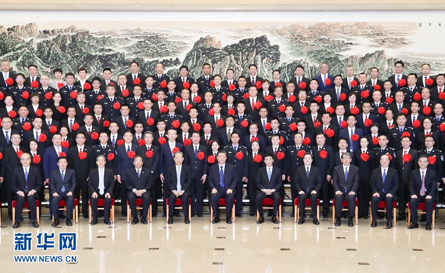 3月29日,黨和國家領(lǐng)導人習近平、王滬寧、趙樂際等在北京會見全國掃黑除惡專項斗爭總結(jié)表彰大會代表。 新華社記者 黃敬文 攝