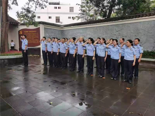 參觀結束后,吳峰帶領全體人員重溫入黨誓詞,面對鮮紅的黨旗,莊嚴舉起右手、緊握拳頭,鏗鏘有力的宣誓聲響徹瓊崖一大會址,表達了對黨的事業(yè)奮斗終身的堅定決心和堅強意志。