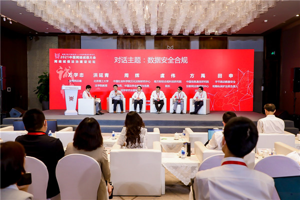 法制網(wǎng)總裁萬學(xué)忠主持論壇“對話環(huán)節(jié)”。北京理工大學(xué)法學(xué)院教授洪延青,中國社會科學(xué)院文化法制研究中心研究員周輝,南方財(cái)經(jīng)合規(guī)科技研究院院長虞偉,中國信息通信研究院互聯(lián)網(wǎng)法律研究中心主任方禹,字節(jié)跳動(dòng)數(shù)據(jù)安全和隱私保護(hù)法務(wù)負(fù)責(zé)人田申等嘉賓,圍繞“數(shù)據(jù)安全合規(guī)”進(jìn)行對話交流,發(fā)表精彩觀點(diǎn)。