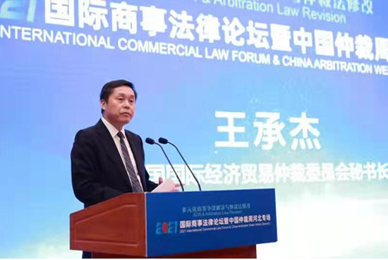 9月17日,2021國(guó)際商事法律論壇暨中國(guó)仲裁周河北專場(chǎng)在河北省石家莊市成功舉辦。由河北省貿(mào)促會(huì)、中國(guó)國(guó)際經(jīng)濟(jì)貿(mào)易仲裁委員會(huì)、中國(guó)國(guó)際貿(mào)易促進(jìn)委員會(huì)調(diào)解中心、河北雄安新區(qū)中級(jí)人民法院、河北省律師協(xié)會(huì)共同主辦。河北省貿(mào)促會(huì)索建杰副會(huì)長(zhǎng)、中國(guó)國(guó)際經(jīng)濟(jì)貿(mào)易仲裁委員會(huì)王承杰副主任兼秘書長(zhǎng)、中國(guó)國(guó)際貿(mào)易促進(jìn)委員會(huì)調(diào)解中心蔡晨風(fēng)秘書長(zhǎng)、河北雄安新區(qū)中級(jí)人民法院張曉梅副院長(zhǎng)、河北省律師協(xié)會(huì)張金龍會(huì)長(zhǎng)致辭。