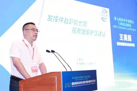 貿(mào)仲雄安分會(huì)王英民秘書長(zhǎng)從貿(mào)仲案件具體情況、貿(mào)仲雄安分會(huì)的設(shè)立,本屆中國(guó)仲裁周三大亮點(diǎn)的角度進(jìn)行了有關(guān)“發(fā)揮仲裁優(yōu)勢(shì),服務(wù)雄安新區(qū)建設(shè)”的主題演講,強(qiáng)調(diào)貿(mào)仲致力于為雄安新區(qū)注入先進(jìn)的國(guó)際仲裁經(jīng)驗(yàn),為營(yíng)造優(yōu)質(zhì)的營(yíng)商環(huán)境保駕護(hù)航。
