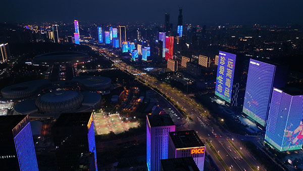 夜幕降臨,山東省濟南市經(jīng)十路近百棟摩天大樓、“泉城第一高”綠地中心大廈、大明湖、趵突泉等地標性建筑和著名景點,瞬間亮起滾動播放的禁毒宣傳片、禁毒宣傳語,引來行人駐足觀望、拍照錄相,爭相在微信、微博、朋友圈轉(zhuǎn)發(fā)?!斑h離毒品,陽光一生”“無毒濟南,點亮泉城”等熱詞,一時間成為廣大市民群眾關(guān)注的焦點。