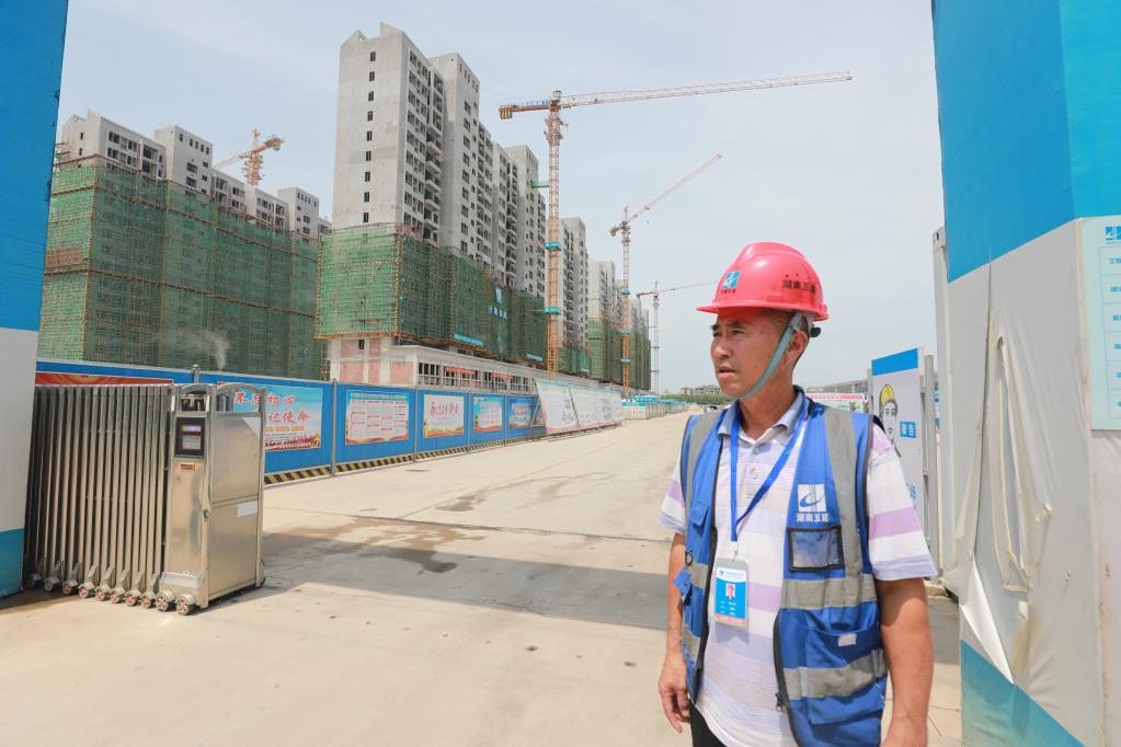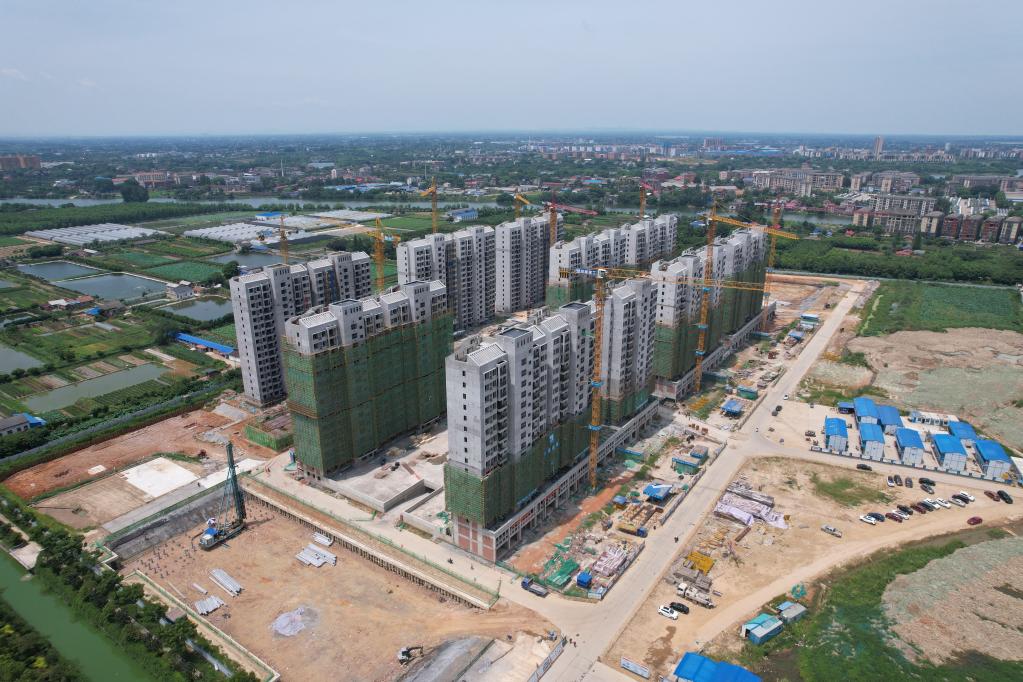 湖南省沅江市的漁民新村,10棟17層電梯房已經(jīng)封頂,正在建設(shè)的6棟大樓周邊,塔吊林立,工程車輛往返,工人們正熱火朝天地干著活兒。