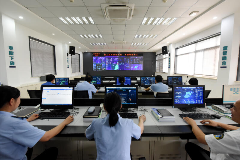 9月6日,“良法善治”網(wǎng)絡(luò)主題宣傳活動(dòng)啟動(dòng)儀式在浙江杭州舉行,活動(dòng)旨在展現(xiàn)各地法治創(chuàng)新實(shí)踐。儀式結(jié)束后,記者來(lái)到杭州市蕭山區(qū)綜合行政執(zhí)法局,在工作人員的帶領(lǐng)下參觀行政執(zhí)法統(tǒng)一協(xié)調(diào)指揮中心。