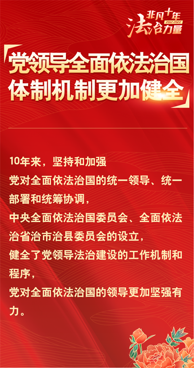 法治網精心策劃制作十期海報,帶您一起領略非凡十年的法治力量!今天為您奉上第二期“黨領導全面依法治國體制機制更加健全”。