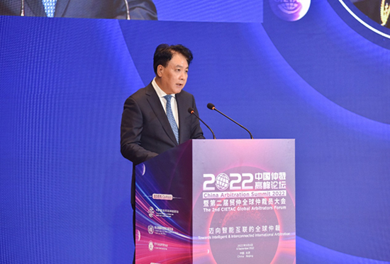 (貿(mào)仲副主任兼秘書長王承杰主持《2022貿(mào)仲全球仲裁員倡議》發(fā)布儀式)