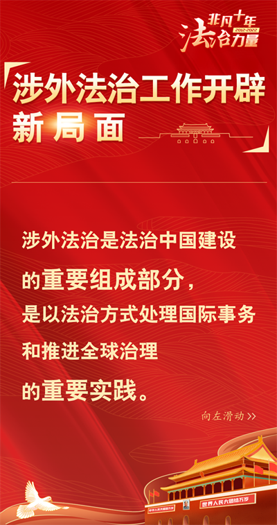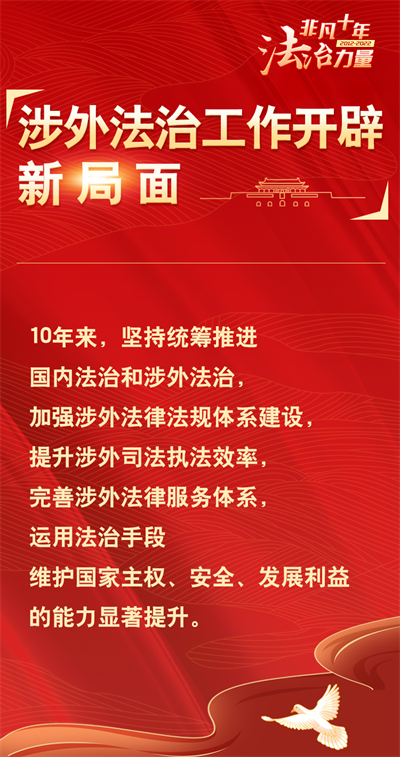 法治網(wǎng)精心策劃制作十期海報(bào),帶您一起領(lǐng)略非凡十年的法治力量!今天為您奉上第八期“涉外法治工作開辟新局面”。