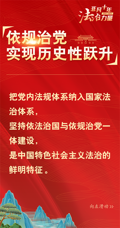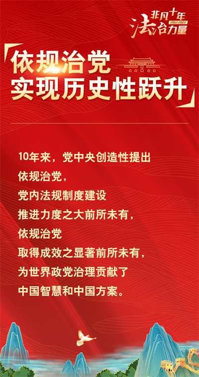 法治網(wǎng)精心策劃制作十期海報,帶您一起領(lǐng)略非凡十年的法治力量!今天為您奉上第九期“依規(guī)治黨實現(xiàn)歷史性躍升”。